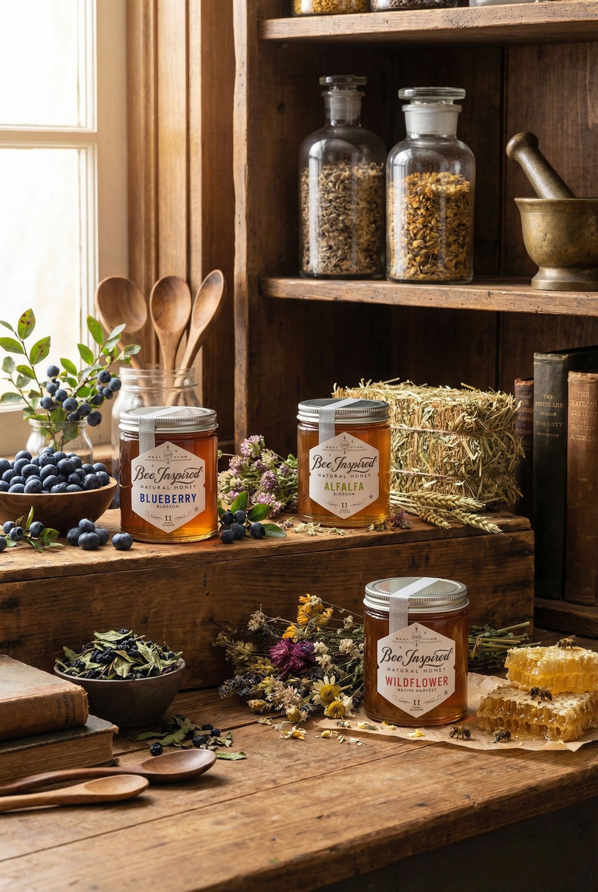 Includes one each of the following products: 11oz Alfalfa Honey, 11oz Blueberry Honey, 11oz Wildflower Honey