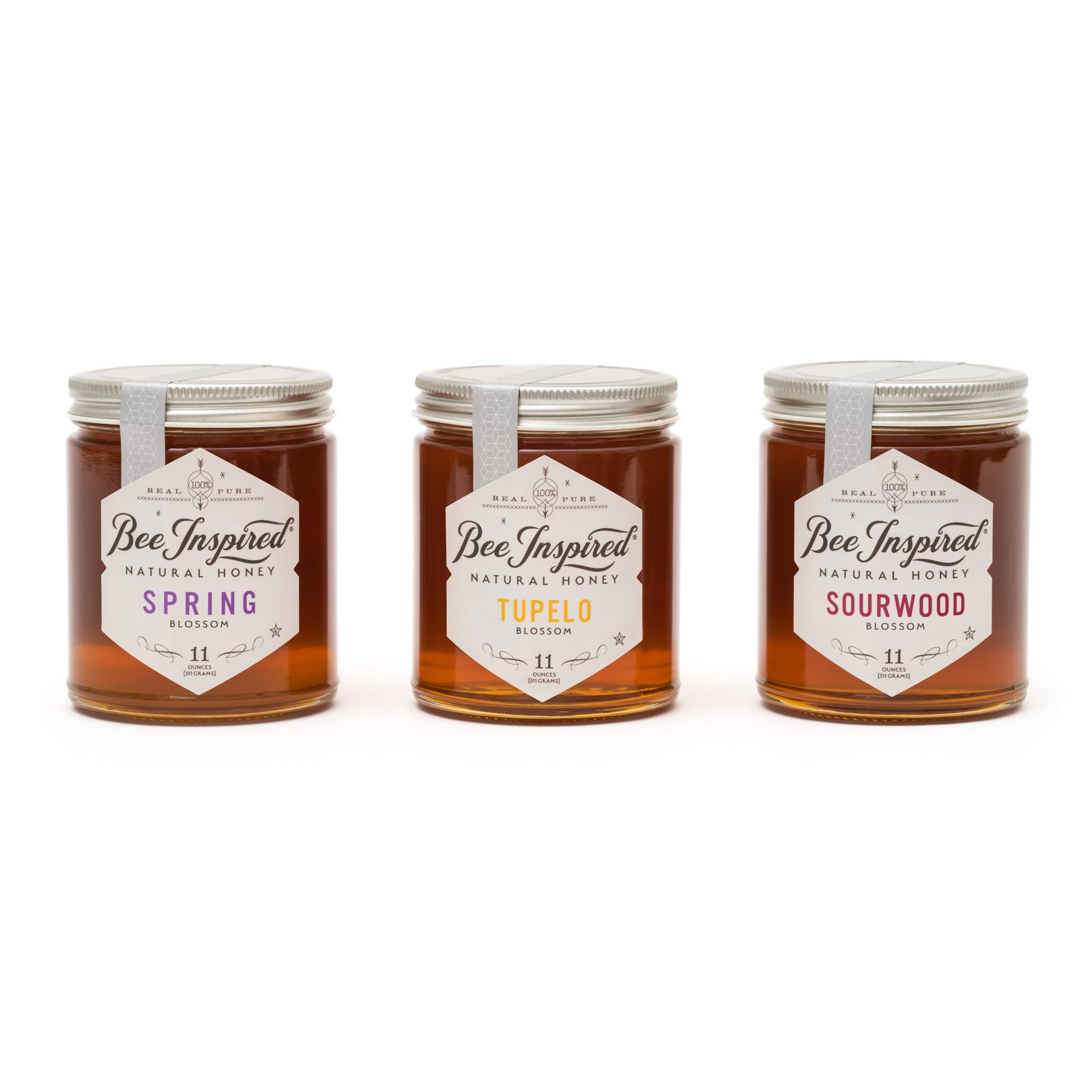 Includes one each of the following products: 11oz Sourwood Blossom Honey, 11oz Spring Blossom Honey, 11oz Tupelo Blossom Honey