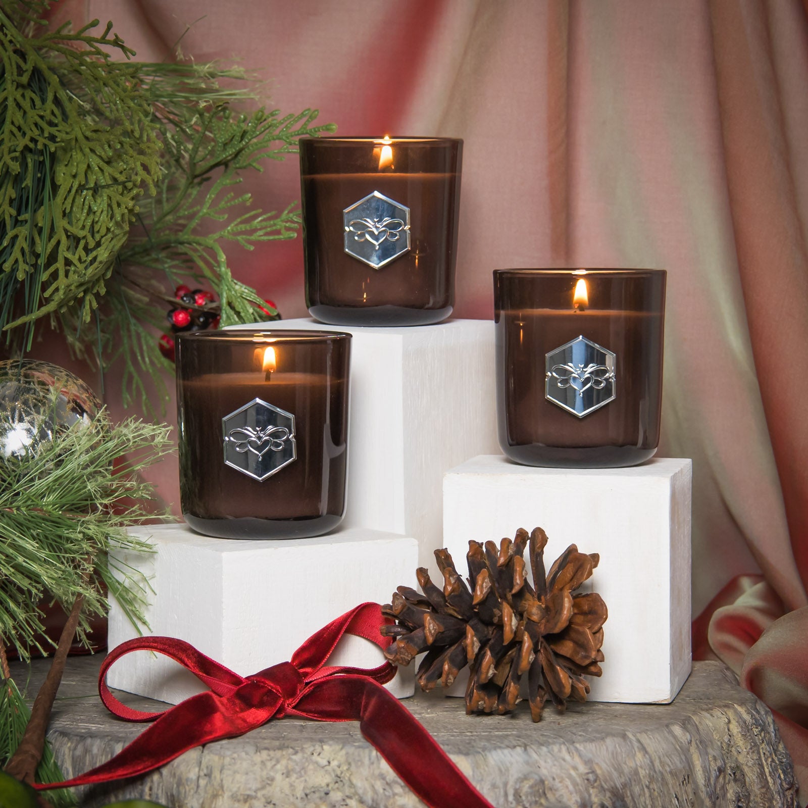 Includes one each of the following products: 4oz Mini-Luxe Haute Cocoa Soy Candle, 4oz Mini-Luxe Sage and Pomegranate Soy Candle, 4oz Mini-Luxe Winter Forest Soy Candle