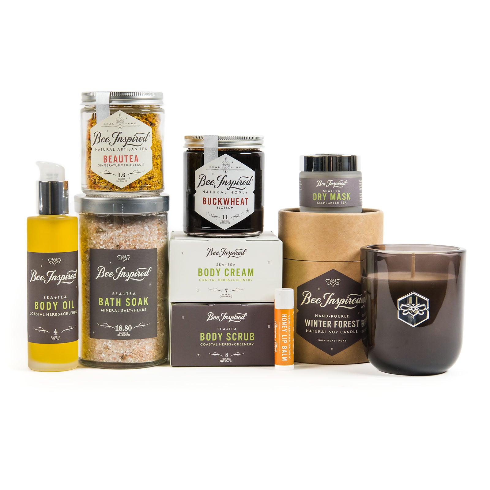 Includes one each of the following products: 18.8oz Sea + Tea Bath Soak, 8oz Sea + Tea Body Scrub, 7oz Sea + Tea Body Cream, 4oz Sea + Tea Body Oil, 1oz Sea + Tea Dry Mask, 3.2oz Beautea, 11oz Buckwheat Honey, 10oz Winter Forest Luxe Soy Candle